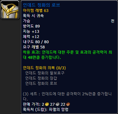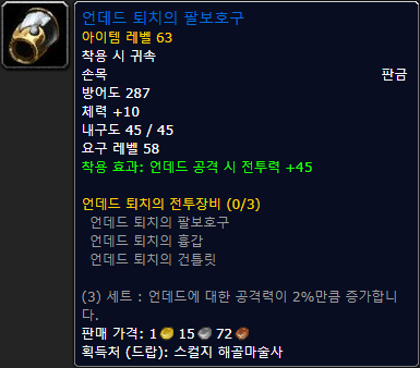 판금, 손, 언데드 공격 시 전투력 +60 |