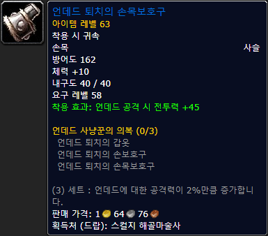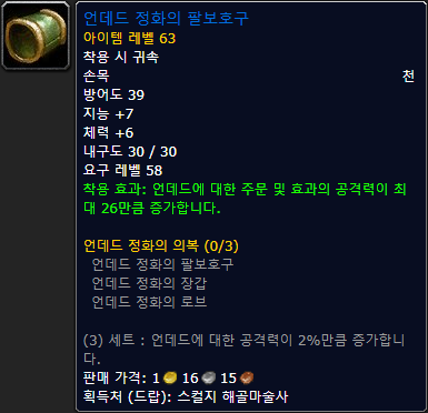 가죽, 손, 언데드 공격 시 전투력 +60 |