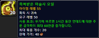 사용효과 : 무기에 바르면 1시간 동안 언데드에 대한 주문 공격력 최대 60 증가 |