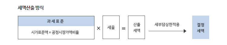 재산세의 세액산출 방식(부과 기준)은 재산세: 과세표준×세율입니다.