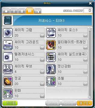 키네시스(시작) > 키네시스(1차 전직) > 키네시스(2차 전직) > 키네시스(3차 전직) > 키네시스(4차 전직) > 키네시스(하이퍼) > 키네시스(5차 전직)