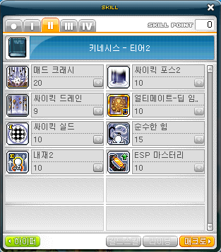 얼티메이트-딥 임팩트 1 > 싸이킥 포스 2 1> 매드 크래시 1 > ESP 마스터리 M > 순수한 힘 M > 내재 2 M > 매드 크래시 M > 얼티메이트-딥 임팩트 M > 싸이킥 드레인 M > 싸이킥 실드 M