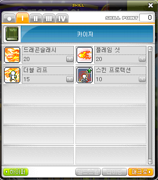 드래건 슬래시 1 > 플레임 샷 1 > 더블 리프 M > 스킨 프로텍션 M > 드래건 슬래시 M > 플레임 샷 M