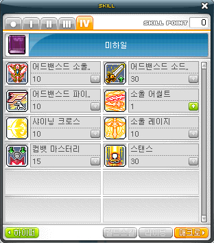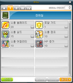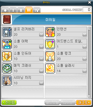 소울 슬래시 1 > 샤이닝 차지 M > 인텐션 M > 소울어택 M > 셀프 리커버리 M > 소울 인듀어 M > 소울 링크 M > 매직 크래쉬 M > 소울 슬래시 M