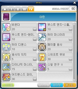 비욘더 M > 메이플 용사 M > 스윙 연구 II M > 하이 디펜스 M > 어드밴스드 파이널 어택 M > 다이나믹 마스터리 II M > 스윙프트 무브 M > 하이 마스터리 M > 부스트엔드-스톰 오브 피어 M > 부스트엔드-헌터즈 타켓팅 M > 용사의 의지 M
