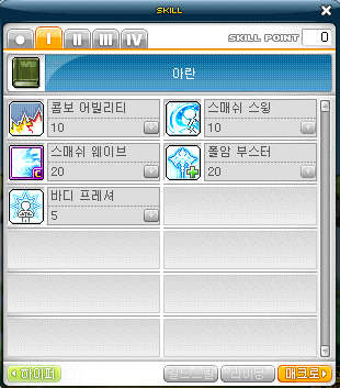 메이플스토리에 2009년 7월 9일 업데이트 된 신규직업 아란 소개 및 스킬트리입니다.