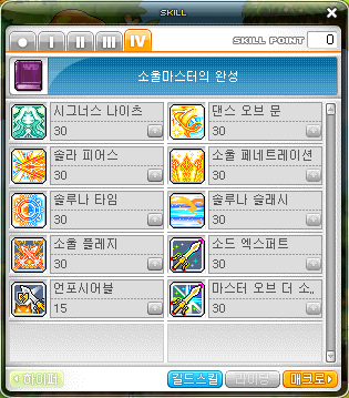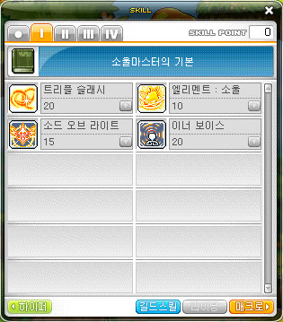 메이플스토리에 2008년 12월 18일 업데이트 된 신규직업 소울마스터 소개 및 스킬트리입니다.