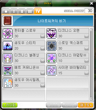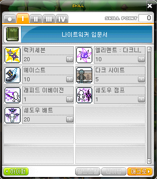 메이플스토리에 2008년 12월 18일 업데이트 된 신규직업 나이트워커 소개 및 스킬트리입니다.