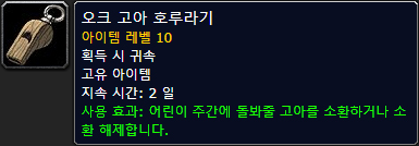 퀘스트 수락 후 "오크 고아 호루라기"를 획득 하여 어린이 주간에 돌봐줄 오크 고아를 소환 할 수 있으며, 오크 고아로부터 퀘스트를 시작 할 수있습니다.